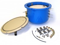 Closure | 8 bolts with wing nuts; O-ring seal on hinged lid |