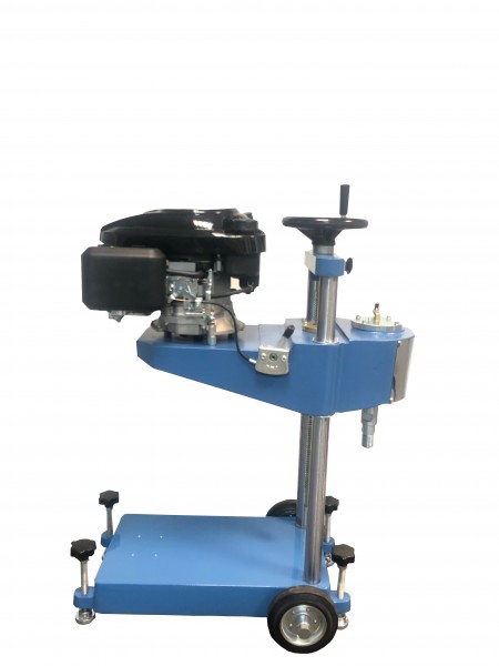 Machine is designed to cut cores up to 150 mm diameter from concrete, asphalt and similar hard construction materials. It comprises a vertical support column which carries the drill head/motor assembly. The motor assembly comprises a 6.5 Hp petrol engine, a ball screw mechanism enables close control of the drilling pressure and rapid return when drilling is completed. A water spraying assembly is mounted on the machine. The complete assembly is supplied on a rigid wheel mounted metal base frame with leveling and fixing facility during the operation.