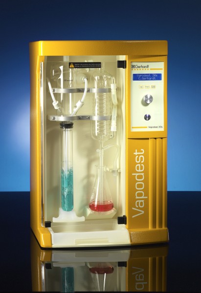 This distillation unit is fully automatic with full microprocessor control. The operator has only to insert the digestion tube and the distillate receiver vessel.