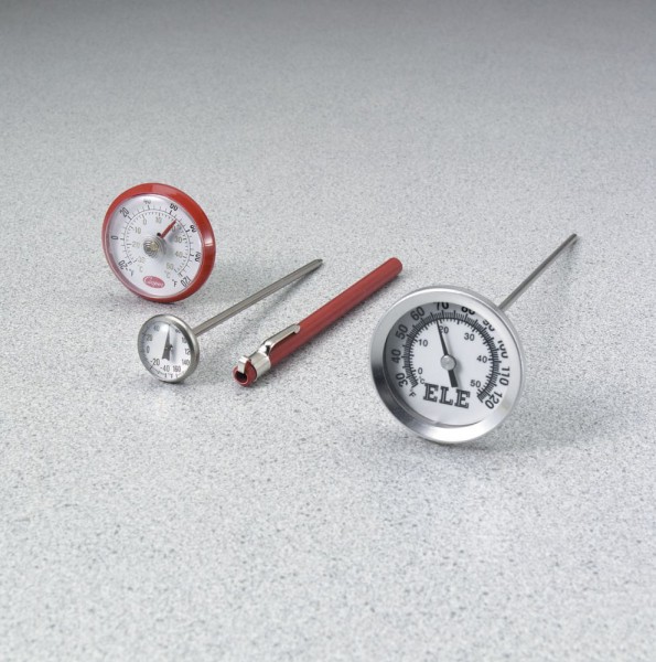 Construction | Dual-scale; 1/8” (3 mm) diam. Stainless steel stem with bimetallic element; adjustable zero; plastic face. |