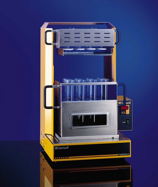 Supplied with digestion block, carrying rack with heat shield, exhaust system, two-tier console, instruction manual and 8 digestion tubes, 250 ml, 300 x 42 mm.