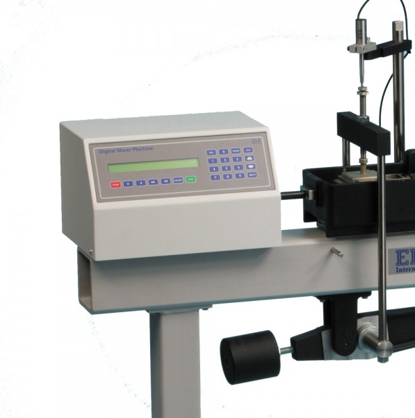 • Microprocessor control• Large on-board LCD screen display• Direct entry via touch sensitive keyboard• Rapid approach and return to start datum• Fully variable speed, 0.00001 to 9.99999 mm/minute• Accepts specimens up to 100 mm squareThe ELE Direct Shear Apparatus accepts specimens 60 mm, 100 mm square or 2.5 inches in diameter. The use of a microprocessor controlled drive system and keyboard entry gives the apparatus a wide range of features that include pause and speed reset during test, RS 232C interface, operator programming of speed and control functions, self test diagnostics and many other features. A return to start datum provides a positive means of reversing the shearbox when either preparing for a new test or continuing with residual testing procedures.Safety forward/reverse travel limit switches are fitted as standard and monitored through the electronics system control.The electronics are housed in a modern moulded shroud, which includes a large LCD display and keyboard entry. The apparatus is enclosed in a robustly constructed case, has been designed for floor mounting and is supplied complete with carriage, loading hanger and 10:1 lever loading device.26-3335
