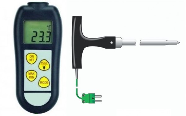 The Digital Grain Thermometer is supplied with a long stainless steel needle and is ideally suited for applications where a longer probe is required. ie grain silos.