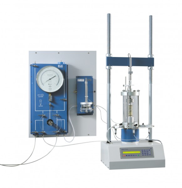 This 50 kN capacity machine, designed primarily for triaxial testing of soil specimens up to 100 mm diameter x 200 mm long, comprises a rigid twin column construction with an integral fully variable microprocessor controlled drive unit and LCD display with a touch sensitive keyboard. The machine is normally bench mounted for ease of installation and operation.
