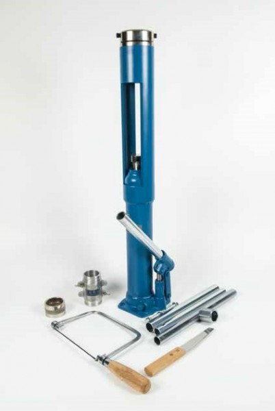 This Sample Extruder comprises a vertically mounted lever action hydraulic jack, with the body extended to form a chamber which accommodates a 38 mm diameter sample tube. Supplied complete with trimming knife, 38 mm split former and wire saw.