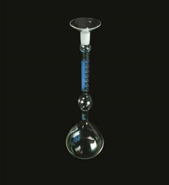 Graduations | Zero mark represents 250 ml, the capacity of the large bulb; neck graduations from 0-1 ml in 0.1 ml divisions with two extra 0.1 ml graduations above the 1.0 and below the 0 marks; bulb portion of neck holds 17 ml; top portion of neck graduated from 18-24 ml in 0.1 ml divisions; 24 ml capacity |