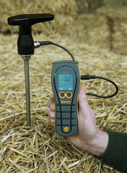 Digital instrument for rapid assessment of moisture levels in straw hay bales.