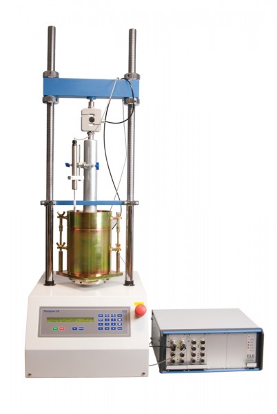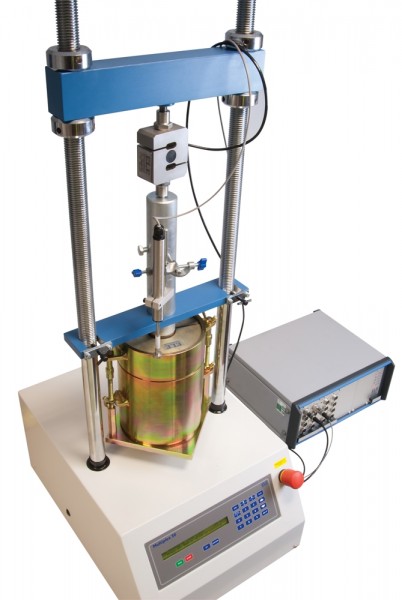 • Microprocessor control• Large on-board LED screen display• Direct entry via a touch sensitive keyboard• Rapid approach and return to datum of platen• Fully variable speed, 0.00001 to 9.99999 mm/min• Samples up to 100 mm diameterThis 50 kN capacity machine, designed primarily for triaxial testing of soil specimens up to 100 mm diameter x 200 mm long, comprises a rigid twin column construction with an integral fully variable microprocessor controlled drive unit and LCD display with a touch sensitive keyboard. The machine is normally bench mounted for ease of installation and operation.The use of a microprocessor controlled drive system and keyboard entry provides the Digital Tritest 50 with a wide variety of features which include pause and speed reset during test, RS 232C, operator programming of speed and control functions, self test diagnostics and many other features.A robustly constructed steel case houses the motor drive system with careful attention being given to the prevention of ingress of water or grit. All operating controls are mounted on the front panel of the machine, which is angled and recessed to prevent physical and environmental damage.