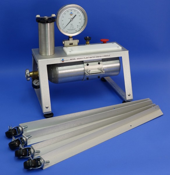 The Plant Water Status Console is supplied with a compressed gas cylinder and connected to a pressure regulator for field operation. The pressure regulator has been set at the factory for the maximum operation pressure of the unit which, for standard units, is 600 psi.