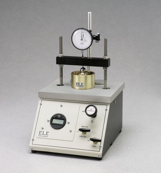 • High capacity – 8800 kPa on 50 mm diameter specimens using 11:1 beam ratio• Triple beam ratio, 9:1, 10:1, 11:1• Compact unit ensures maximum space savingThe ELE Oedometer is rigidly constructed to ensure minimum frame distortion. The frame is designed to load the specimen through a yoke assembly and one of three alternative beam ratios. The beam is fitted with a counterbalance weight and beam support jack. The cell platform will accept the complete range of ELE consolidation cells and is fitted with a central spigot to ensure accurate centring of the cell under the loading yoke. Dimensions without hanger 711 x 203 x 508 mm (l x w x h). Weight 24 kg. PLEASE NOTE: 25-0402 does not come with a mounting stand, cell or a transducer