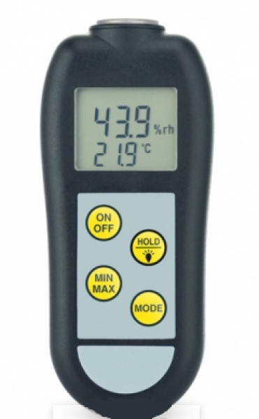 This hand-held battery operated instrument is operated by a single keypad button. It is suitable for a wide variety of applications where fast and accurate measurements of relative humidity and temperature are required. The probe is connected to the display unit via a one metre flexi-cable which enables its measurements to be taken in areas where access is limited.