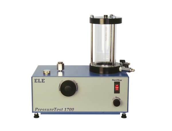 The ELE oil/water constant pressure system, PressureTest 1700, is extremely versatile and can be used in conjunction with a wide range of test equipment. The unit provides continuous variable pressure up to 1700 kPa. Pressure is increased or decreased simply by turning a control wheel.