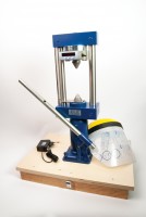 Originally developed at Imperial College, London, the apparatus comprises a two-column fixed crosshead frame and a hand operated hydraulic jack. Pressure applied by the jack extends the piston carrying the lower conical point. The upper point is fixed to the crosshead with a scale mounted on the frame to provide specimen diameter information for use in point-load strength index calculations. Pressure is indicated directly on the digital readout unit. Loads up to 55 kN can be applied to specimens as large as 101.6 mm in diameter. The apparatus is supplied complete with heavy-duty face mask. Standard: ASTM D5731
