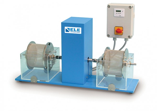 The rock samples are dried and then submitted to wear stress inside a drum which is rotated in water. The test is repeated and the wear is given by the loss of weight in the sample. The system incorporates a motor drive unit mounted on a baseplate which revolves two (or up to four) Stainless Steel drums manufactured from 2 mm mesh, 140 mm diameter x 100 mm long. The tanks are filled with water to a level 20 mm below the drum axis. A digital timer automatically stops the motor after the pre-set time. The equipment is supplied complete with two drums with tanks.